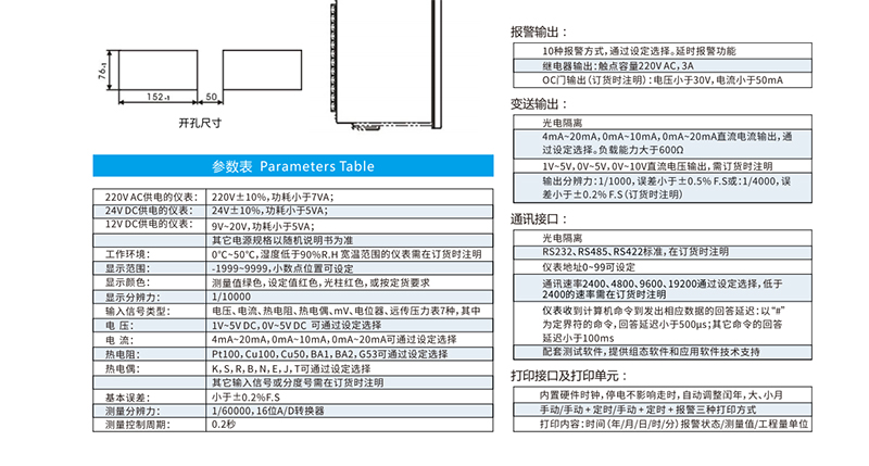 單通道數(shù)字式智能儀表與各類模擬量輸出的傳